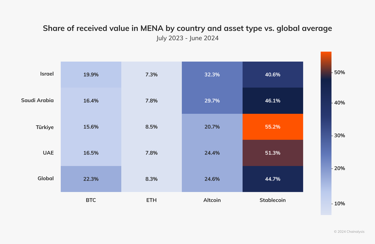 العملات المستقرة، وهي عملات رقمية مرتبطة بأصول مثل الدولار الأمريكي أو الذهب، تُقدّم بديلًا مستقرًا عن الرموز المتقلبة مثل بيتكوين أو إيثيريوم. في الإمارات، حيث يشكل 88٪ من السكان تدفقات تحويلات مالية كبيرة وتسعى الشركات لتحويلات عبر الحدود بكفاءة، تُعالج العملات المستقرة مشكلات رئيسية مثل: الرسوم المرتفعة، التحويلات البطيئة، وتقلبات العملات. ووفقًا لدراسة بحثية من Chainanalysis، تُهيمن العملات المستقرة على المعاملات الرقمية في منطقة الشرق الأوسط وشمال إفريقيا، وتمثل جزءًا كبيرًا من قيمة الـ 30 مليار دولار من المعاملات الرقمية في الإمارات خلال 2023-2024. وتأتي هذه الشعبية من قدرتها على الجمع بين سرعة وشفافية البلوك تشين واستقرار العملات التقليدية.