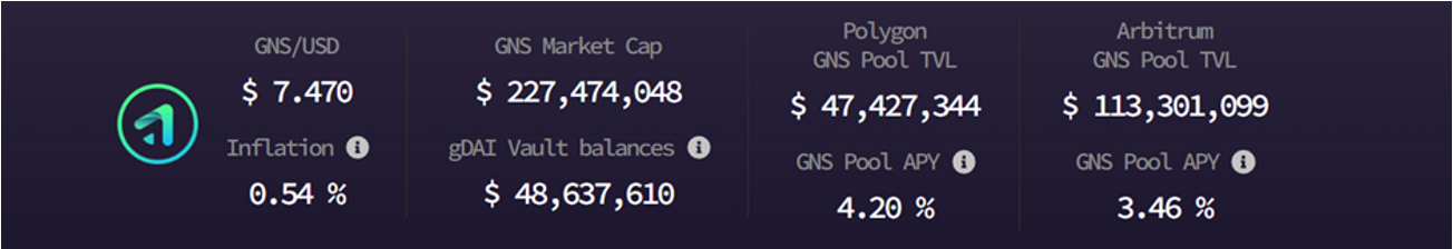Tuy nhiên, tất cả các hồ bơi này đều không còn hoạt động nữa. Hồ bơi duy nhất có ý nghĩa trong thời điểm hiện tại là hồ bơi GNS. Hiện tại, nó có tỷ lệ lạm phát là 0,54%, số dư hầm gDAI gần 50 triệu đô la và APY là 4,2% trên Polygon với 3,46% trên Arbitrum.