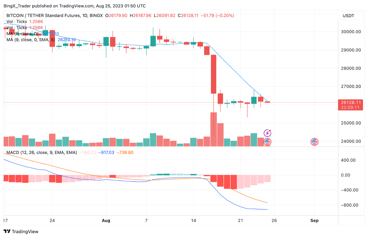 Hiện tại, BTC đang hình thành một đáy mới quanh mức 💲26,000, và chưa rõ liệu biến động này có tiếp tục diễn biến như những việc đã xảy ra khi giá BTC ở quanh mức 💲30,000. Điều chúng ta cần tập trung vào bây giờ là xem Ngân hàng Dự trữ Liên bang có tạm dừng việc tăng lãi suất hay không, đây là một chỉ số quan trọng cho thanh khoản thị trường. Mức hỗ trợ hiện tại cho BTC là 💲25,800 và mức kháng cự là 💲26,600.