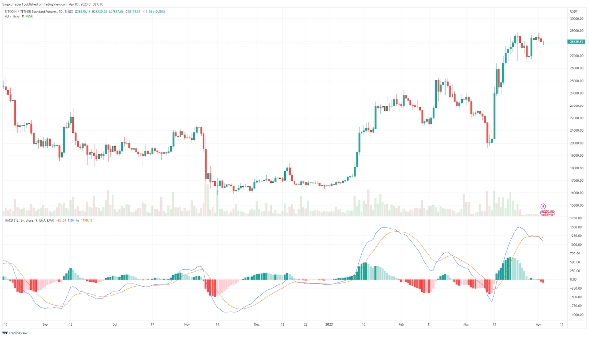 Bitcoin giảm 1,05% trong 24 giờ qua và giảm xuống mức thấp nhất trong ngày là 27.856,43 USD. Vào ngày 30 tháng 3, tiền điện tử lớn nhất đã tăng trên 29.000 đô la. Tuy nhiên, nó đã không thể duy trì vị thế của mình trên mức đó, cho thấy phe gấu vẫn đang hoạt động và đang sử dụng các đợt phục hồi như một cơ hội để bán. Đường trung bình động hàm mũ 20 ngày đang tăng, cùng với chỉ số sức mạnh tương đối trong vùng tích cực, cho thấy tâm lý thị trường vẫn mạnh mẽ. Nếu cặp BTC/USDT cố gắng giữ vững trên mốc 28.000 đô la, thì có khả năng nó sẽ tăng lên 30.000 đô la.