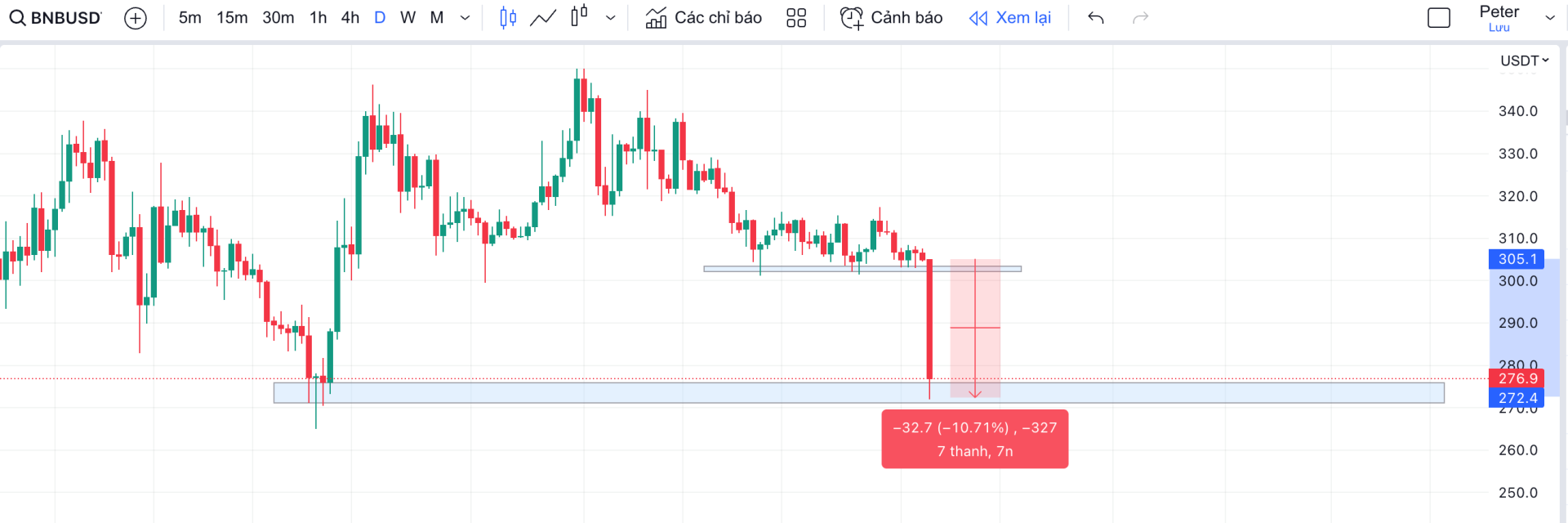 Đồng tiền bị thiệt hại nghiêm trọng nhất chính là BNB, giảm đến 10% về mốc 272 USD vào tối ngày 05/06.