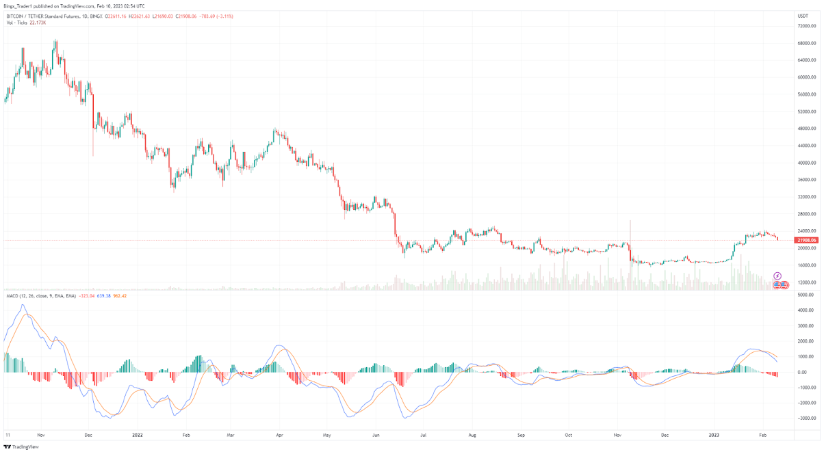 Bitcoin đã giảm 4,53% trong 24 giờ qua và đạt mức giá thấp nhất trong ngày là $21.700,00. Giá Bitcoin đã giảm xuống dưới 22.000 đô la sau khi SEC cáo buộc Kraken vi phạm luật chứng khoán Hoa Kỳ vì ra mắt một chương trình staking tiền điện tử chưa đăng ký. Trong những tuần gần đây, giá BTC đã phải vật lộn để vượt qua mức kháng cự quan trọng 25 nghìn đô la và giá của đồng coin hàng đầu thị trường hiện vẫn đang giảm dần. Sức mạnh tương đối (relative strength) của Bitcoin giảm xuống dưới điểm giữa cho thấy đà tăng đang nguội dần, do đó, có khả năng cao Bitcoin sẽ điều chỉnh trước đợt phục hồi giá tiếp theo.