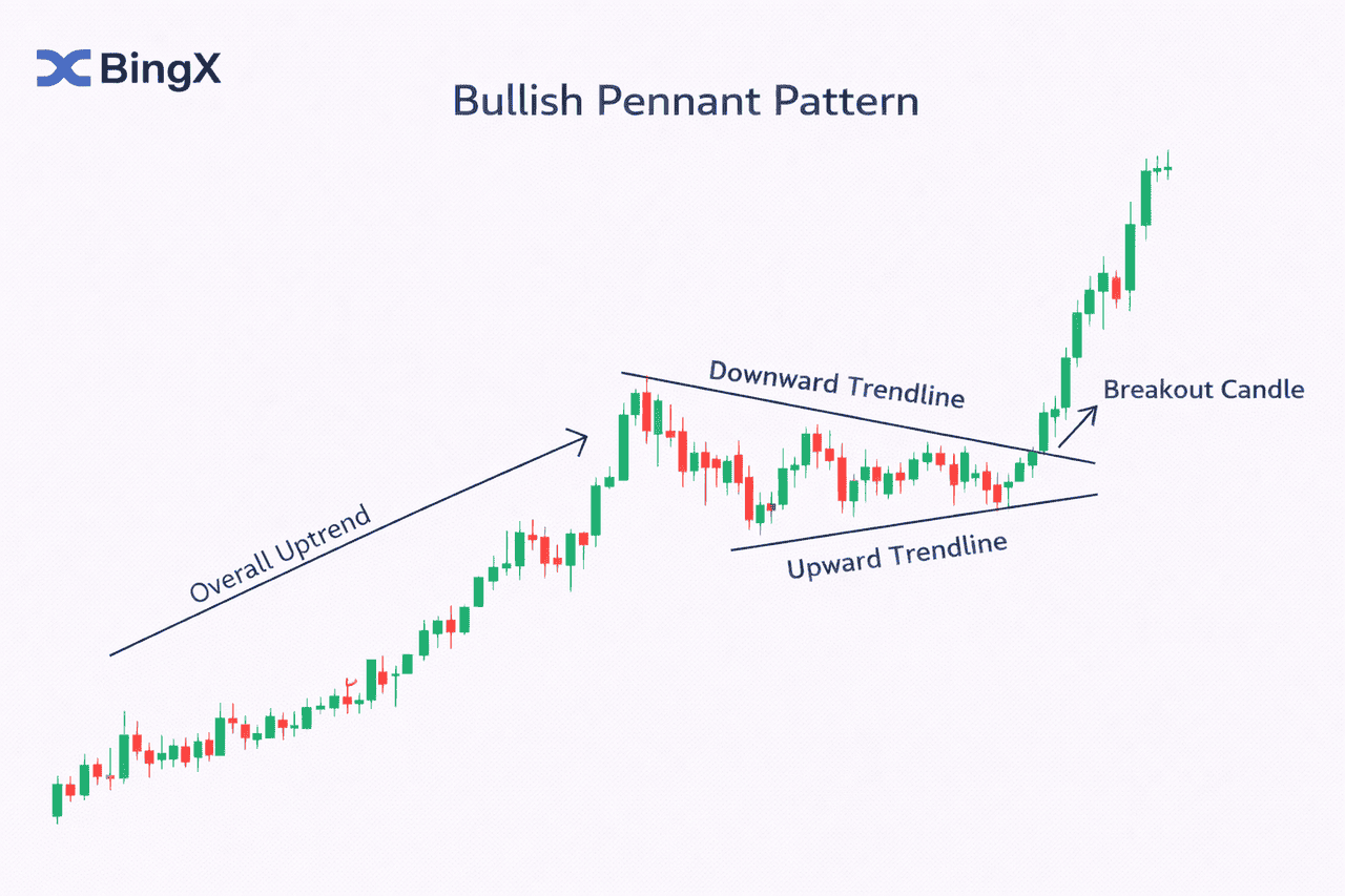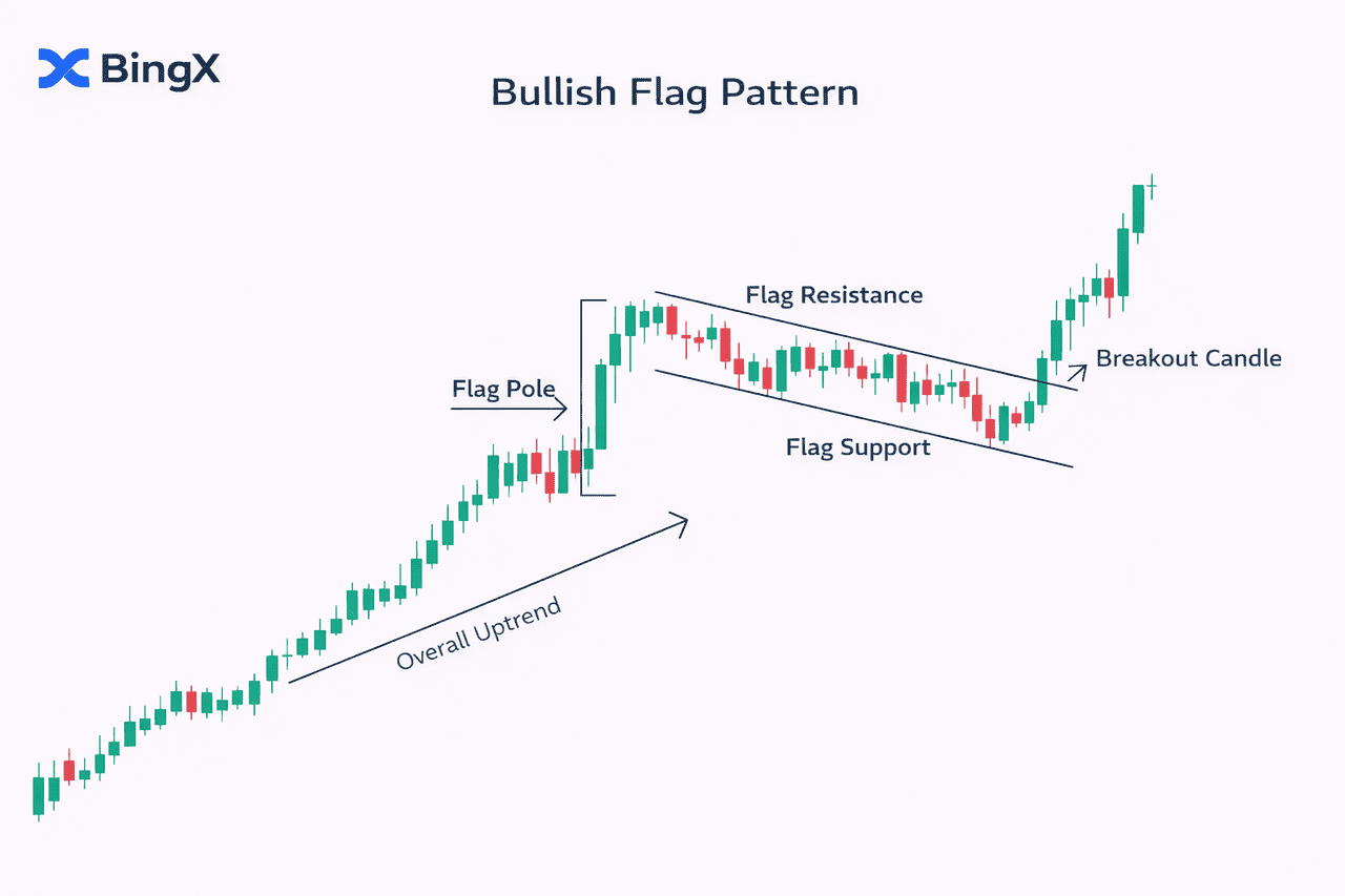 Fortsetzungsmuster sind spezifische visuelle Formationen auf einem Preischart, die eine vorübergehende Pause in einem vorherrschenden Trend signalisieren. Anders als Umkehrmuster, die eine Richtungsänderung vorhersagen, deuten diese Trading-Muster darauf hin, dass sich der Markt konsolidiert, bevor er in derselben Richtung fortfährt. Durch die Beherrschung der Mustererkennung können Krypto-Trader wahrscheinliche Einstiegspunkte identifizieren, um einem bestehenden Trend mit besserem Timing und geringerem Risiko zu folgen.