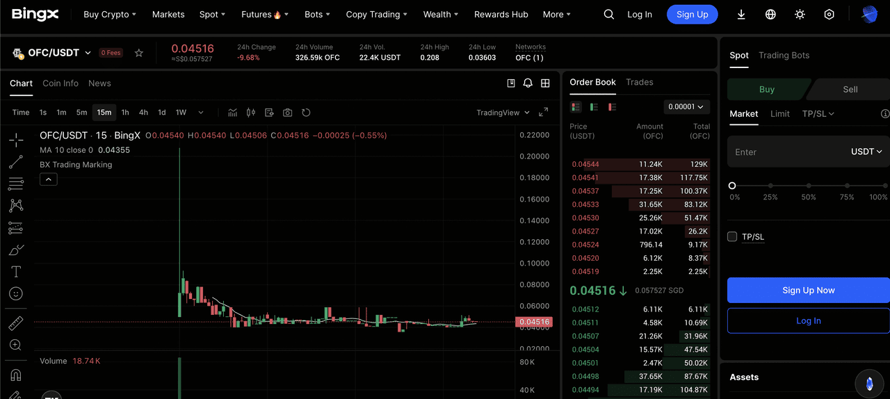 OFC/USDT-Handelspaar auf dem BingX Spot-Markt