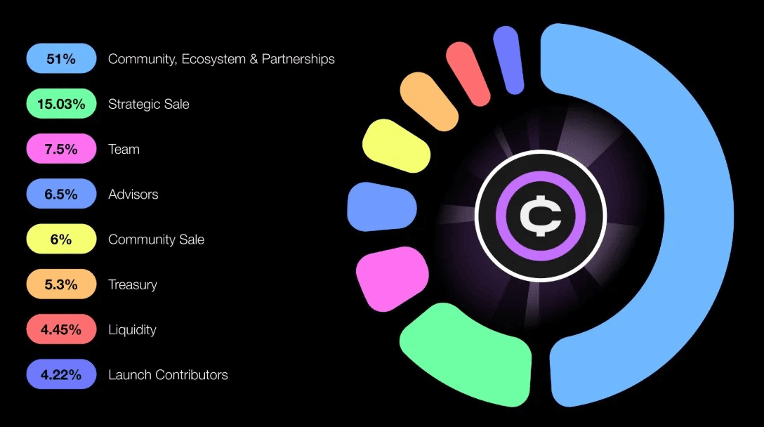 - Community und Ökosystem (51,00%): Gewidmet für Nutzerbelohnungen, Airdrops und langfristige Wachstumsanreize zur Förderung der Plattformadoption.