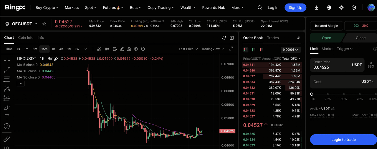 OFC/USDT Perpetual Contract auf dem BingX Futures-Markt