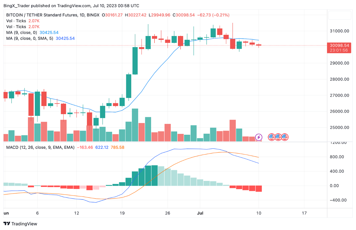 BTC vẫn đang trong một mô hình yếu và dao động không có hướng rõ ràng. Trên biểu đồ hàng ngày, các dải Bollinger đang co lại, cho thấy có một sự thay đổi sắp xảy ra. Giá hiện tại đang nằm dưới đường trung bình và cần chú ý đến phạm vi hỗ trợ nằm giữa $29,500 và $30,000. Nếu phạm vi này bị xâm phạm, mức tiếp theo cần quan tâm sẽ nằm giữa $28,000 và $28,500. Có khả năng xảy ra pullback nếu BTC không thể khôi phục lại dải Bollinger Band trên.