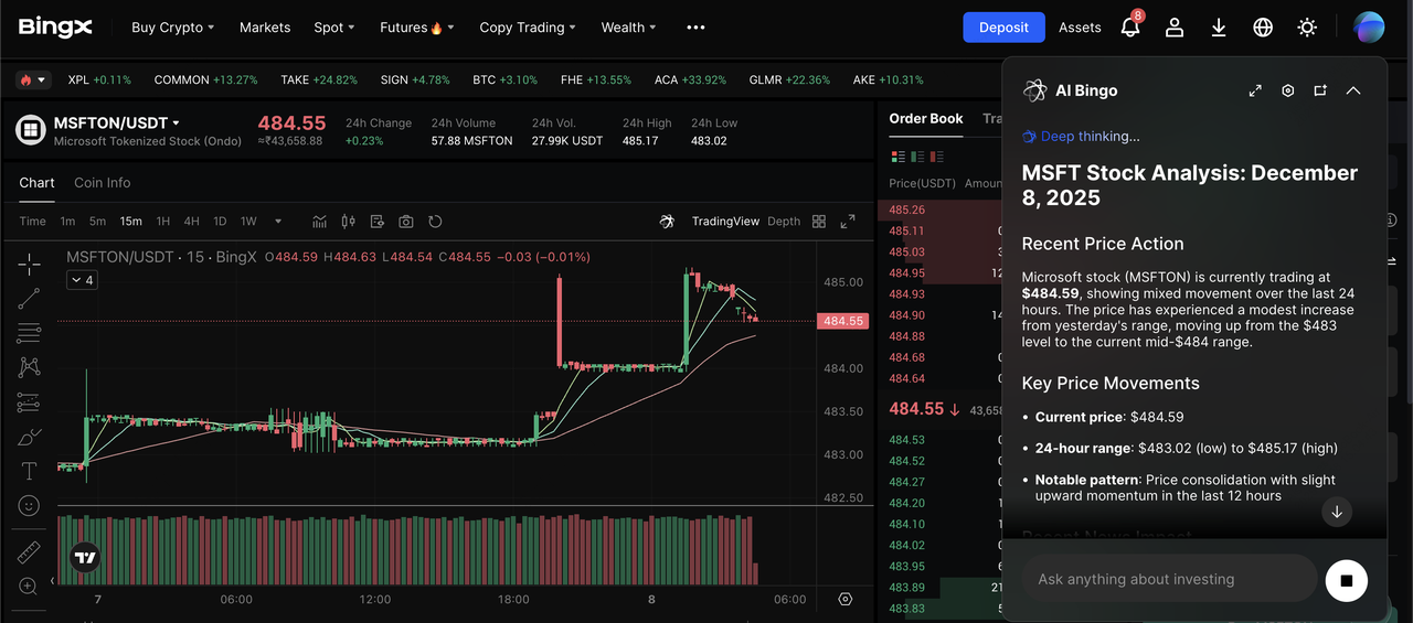 Microsoft tokenized stock (MSFTON) is listed on BingX, where you can buy and sell it using USDT just like any other crypto trading pair.