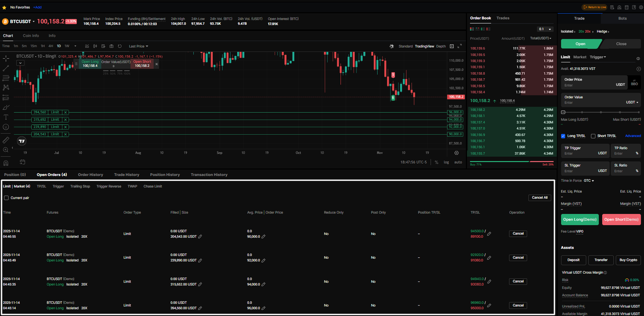 • Bekerja secara efektif dengan bot DCA dan bot grid di BingX