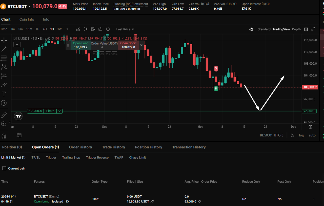 BTC mulai pulih. Harga naik dari $90.000 kembali menuju $100.000 dan seterusnya. Anda memiliki dua opsi keluar tergantung pada pendekatan Anda: