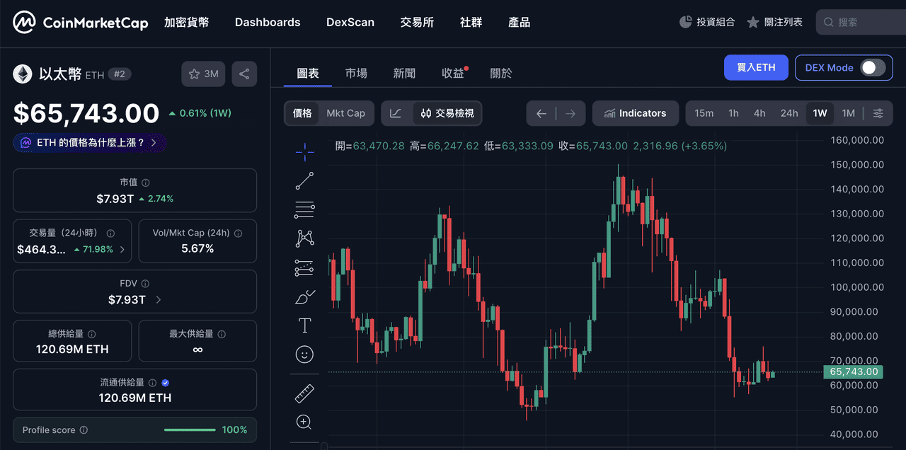 - シンプルな情報インターフェース:CoinMarketCapはETH価格、時価総額、取引量、変動率などの核心データを集中表示し、情報構造が明確。BingXなどの取引プラットフォームに入る前に、市場価格範囲と全体トレンドを迅速に確認するのに適している。