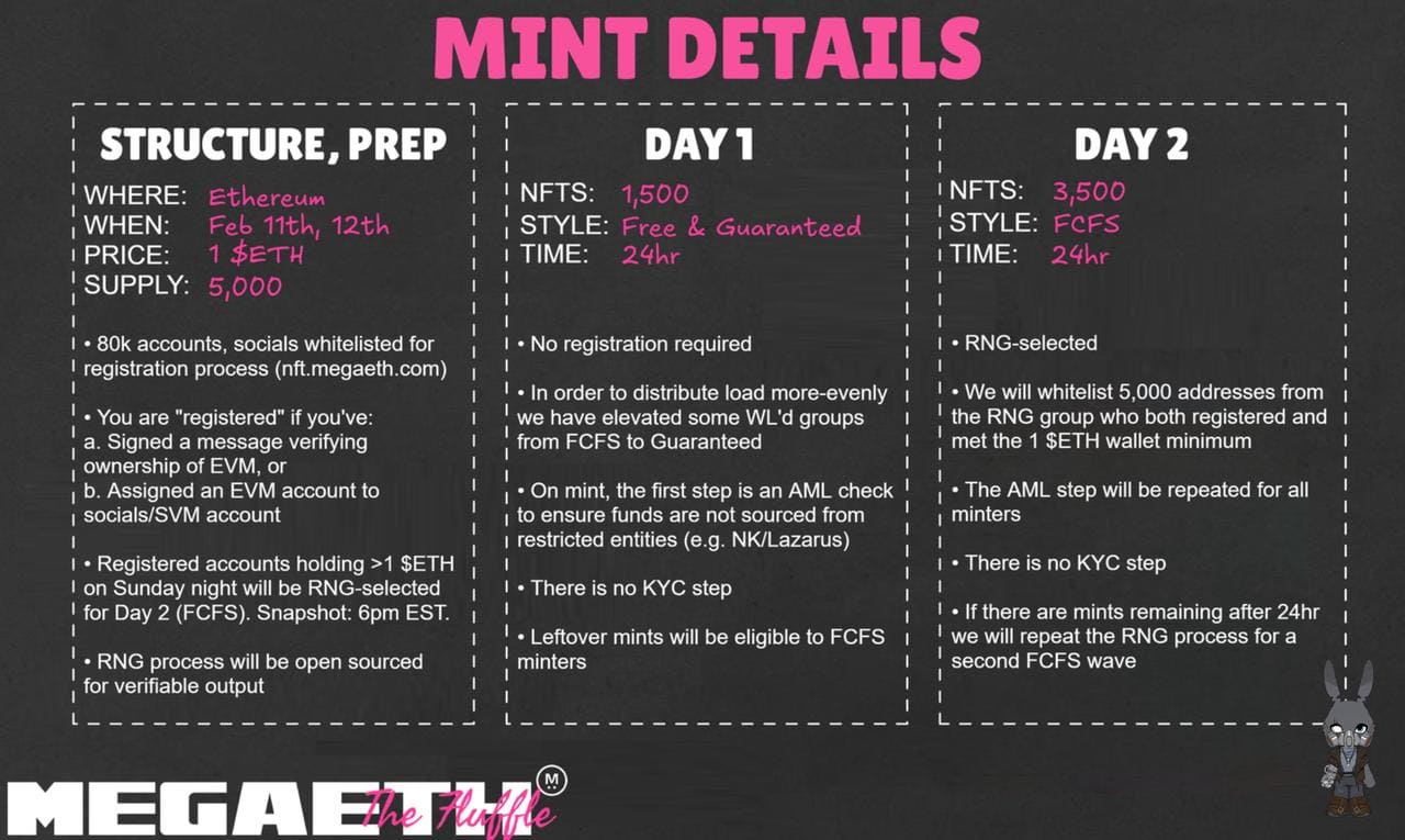 在這兩個階段中,The Fluffe NFT 至少佔 $MEGA 代幣總供應量的 5%,持有者在主網上線後可能會獲得額外獎勵。
