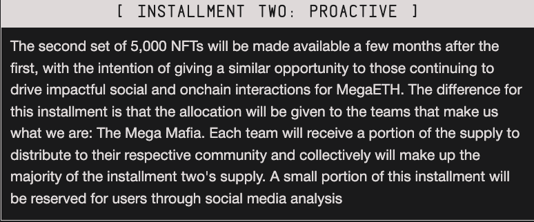 儘管第一階段已結束,但這些 NFT 的持有者共同代表了 $MEGA 代幣總供應量的至少 5%,構成了 MegaETH 早期社區基礎。