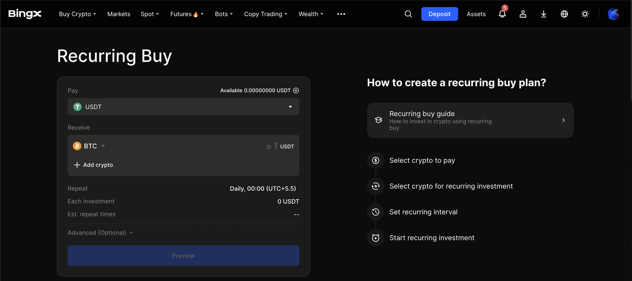 使用BingX定期購買DCA比特幣