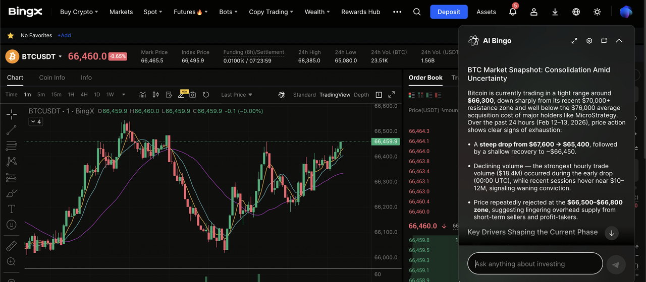 無論你是零售交易者還是尋求像鯨魚一樣的長期配置,BingX都提供專業工具以深度流動性和BingX AI驅動洞察來交易比特幣。