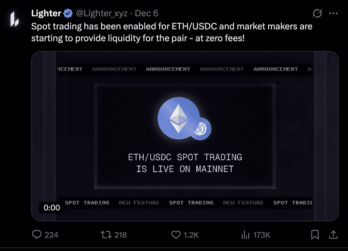 隨著 Lighter 積分計劃的結束和 $LIT 空投預計於 2025 年 12 月 31 日前發生,符合資格的用戶應專注於分發後的策略以最大化獎勵。策略性地持有您完全解鎖的代幣,以從計劃中的回購和收入累積機制中獲取價值,這些機制將平台收益回饋給持有者。透過在零手續費現貨市場和低點差永續合約中交易,繼續積極參與 Lighter,為潛在的未來激勵或獎勵持續活動的季度做好準備。